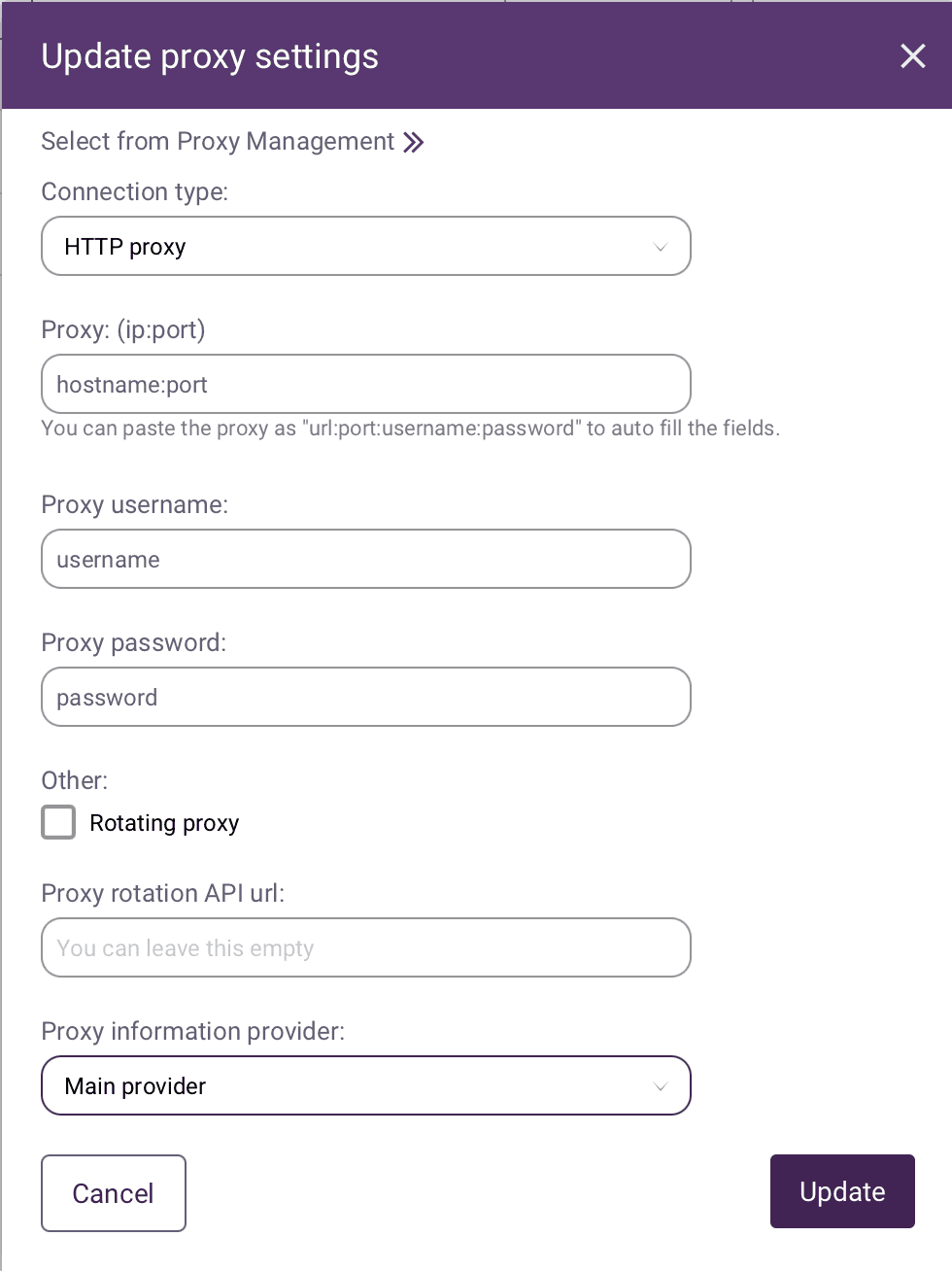 First, each Incogniton profile can be assigned a dedicated Evomi proxy, ensuring that every browser environment has a consistent IP address and network footprint.