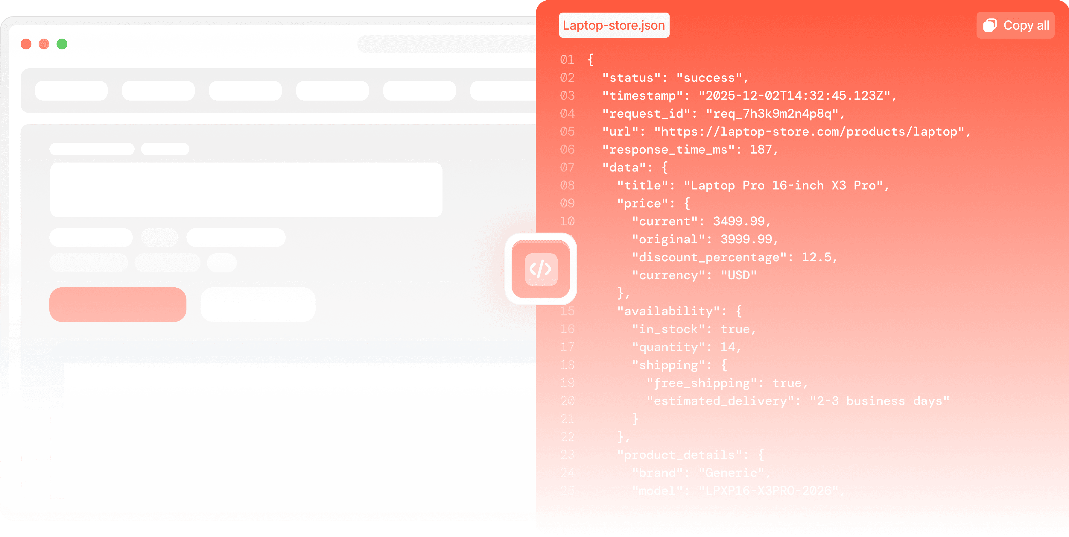 Eliminate the complexity of managing proxies and headless browsers. Just send a URL to our API, and we handle the rendering, parsing, and anti-bot bypassing to return clean, ready-to-use JSON in seconds.